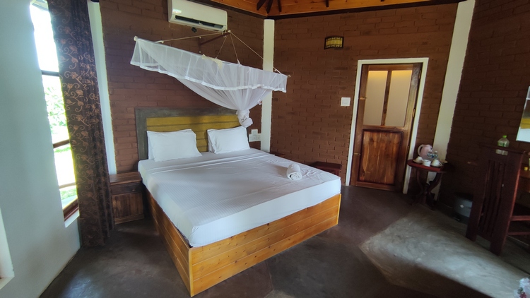 A la altura de Tissa Wewa, mientras Google Maps nos guiaba hasta el hotel, nos aborda un jeep para safaris, uno de estos abiertos que tienen varias filas de asientos a varias alturas, y el conductor se nos ofrece como nuestro guía para mañana en Yala NP. A la hora de comer cotejamos precios y opciones. Acordamos con el 120$ (bajando desde 180$) los dos todo el día, todo incluido, recogida en el hotel, comida y entradas. Como en Tissa no hay mucho que hacer y estamos cansados del viaje, pasamos la tarde en la piscina (somos los únicos huéspedes) disfrutando de las vistas, de la puesta de sol, y de los intentos de cortejo de los pavos reales que abundan en los arrozales.