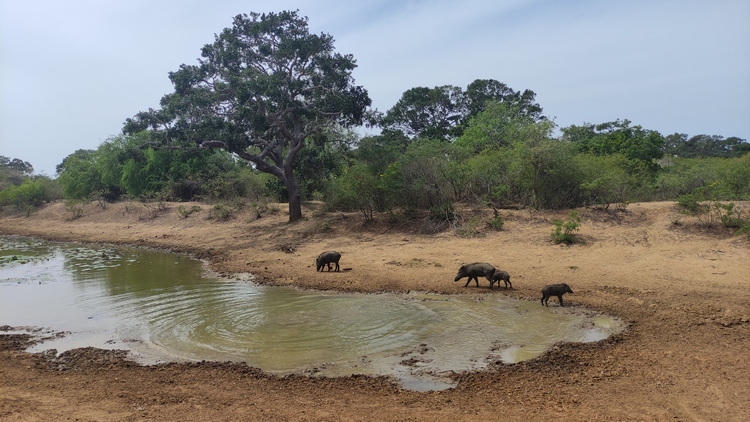 Yala NP, excursión corta de 06:00 a 10:00 (50$), medio día (65$) y día completo (90$). El vehículo es un jeep abierto con tres filas de asientos apto para nueve pasajeros, el tour suele incluir comida (día completo) y entrada de acceso al parque, la puerta principal está a media hora de Tissa y los tours suelen empezar a las 05:00 hora de recogida en el hotel. El paisaje dentro del parque es muy diverso: bosques, praderas, pantanos, humedales, playas de arena, lagunas costeras, manglares y zonas de pasto, albergan la mayor densidad de elefantes y leopardos de la isla. Además pueden verse diversos tipos de cocodrilos, tortugas, gacelas, mangostas cobras, víboras, oso bezudo, búfalos de agua, facóqueros, monos, y pájaros de todos los tamaños y colores: pelícanos, flamencos, espátula común, garzas, patos...