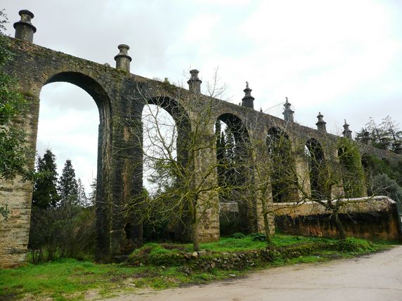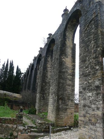 de largo y 180 arcos, traía agua desde cuatro manantiales situados en Pegões. También se conserva aún gran parte