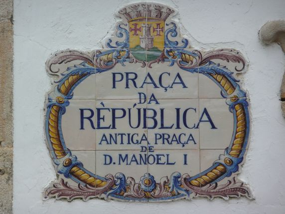 ve enfrente, Gen Bernardo Fera. En lo alto de la colina se ve el Convento de Cristo. Paso frente al Museo dos Fósforos, y sigo recto hasta la pza da Republica. Pasada la Igleja de Sao Joao Baptista, la calle que delimita la