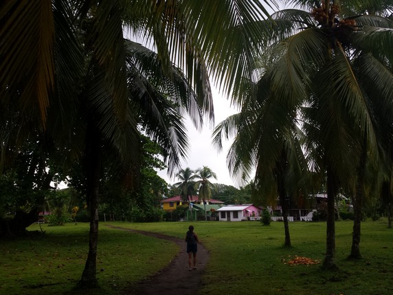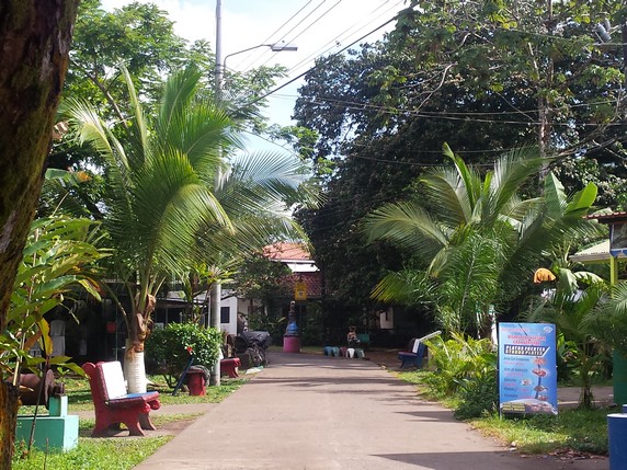 Tortuguero es un pueblo pequeño, un centenar de casas tal vez, que forma un triángulo entre la laguna y sus canales, el mar Caribe y el Parque Nacional Tortuguero. Su calle principal discurre paralela al canal principal, en el centro queda el embarcadero, hay 500 mts a un lado hasta el cajero automático, y otros 300 mts al otro hasta la entrada al Parque Nacional. Todo en esta calle son servicios turísticos: restaurantes, supermercados, tiendas de