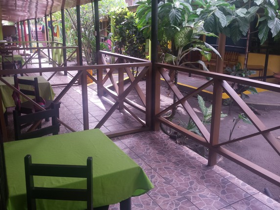 D'leite, un restaurante con terraza frente al muelle. Nos lo recomendó un guía local el primer día. Huevos rancheros con tostadas y pinto, huevos revueltos con tostadas, dos zumos y dos tés, unos 7.000 colones. La comida es deliciosa, la terraza tranquila y con sombra, y es frecuentado por locales, buena señal.