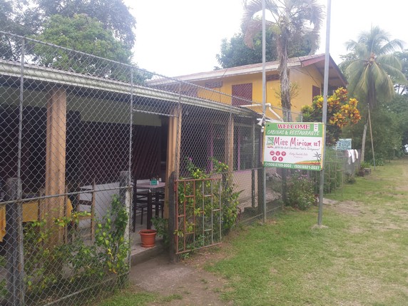 Miss Míriam. Junto al campo de fútbol. Cocina local caribeña. Platos de pollo y chuleta de cerdo acompañados de