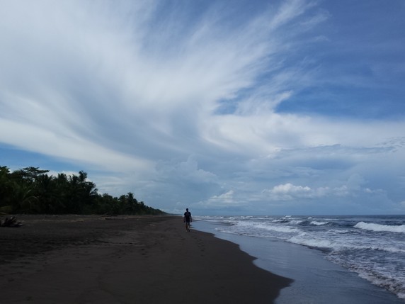 caminata. El único sendero habilitado para turistas, es una pista de tierra de unos 2,5 km, que discurre paralela a la playa. Es un hábitat completamente selvático, y aunque existe la posibilidad remota de encontrarte con un tapir o un jaguar, lo más probable es que no pases de un montón de lagartos, iguanas, mariposas y algún tucán. En el último tramo del sendero se ven a nuestra izquierda los nidos de tortugas. Vemos con estupor como un grupo de buitres se pega un festín en uno de ellos, dan ganas de intervenir, las tortugas son tan dulces y los buitres tan feos...