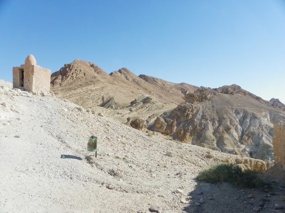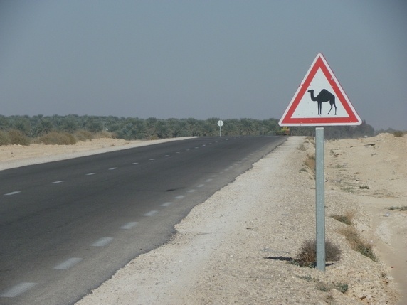 Hoy visitaremos los oasis bereberes de montaña que hay cerca de Tozeur (60-70 km), se trata de Chebikka, Tamerza y Midès. La apariencia actual de estos antiguos pueblos bereberes, solo quedan las casas en ruinas, es el resultado de 22 días de lluvias torrenciales caídas en 1969 y que obligaron a sus habitantes a abandonarlos y construir nuevas residencias a toda prisa. La primera parada es Chebikka. Hay que coger la carretera dirección Gfax y tomar el desvío tras Al Hamma, la carretera esta bien asfaltada pero los primeros 14 km están en obras. En la carretera hay señales de "peligro camellos cruzando" y realmente los hay. Vemos varios rebaños, uno de ellos de casi 200 ejemplares.