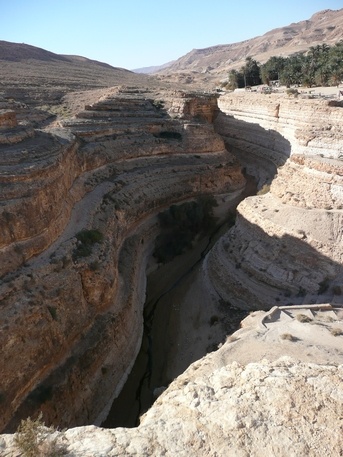Midès, al borde de un desfiladero a 400 mts de la frontera argelina. Se trata de una garganta de altas paredes formada por un río casi seco, en cuya parte alta se encuentra el pueblo rodeado de un frondoso palmeral. Algunos senderos bajan al fondo del cañón, desde el que un paseo de 7km nos llevaría hasta Tamerza. Esta impresionante garganta fue usada como estructura defensiva natural en el pasado, y se rodaron las escenas del accidente aéreo de "El paciente inglés". Al otro lado del cañón, junto al pueblo beréber hay un café y puestos de recuerdos.