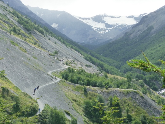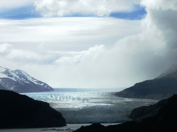 14:30 La ruta sale desde el lago Pehoé, junto al camping, para ir a buscar a través de un valle el Glaciar Grey. Es un camino pedregoso y estrecho, con una moderada pendiente hasta Laguna Los Patos. A partir de aquí caminamos paralelos a la laguna y un riachuelo, rodeados de frondoso bosque. La pendiente es mas suave y la pista mas cómoda. Llegamos al Mirador del Lago Grey, desde donde hay unas espectaculares vistas panorámicas del glaciar. Estamos a 4,5 km del camping Paine Grande y 6 km del Refugio Grey. Tras descansar y sacar algunas fotos iniciamos la vuelta. 18:00 Ya vemos las aguas azul turquesa del lago Pehoé. 19:00 Cenamos en el refugio, el menú cuesta 11.000 CLP y es muy completo. Antes de ir a dormir rellenamos la botella.