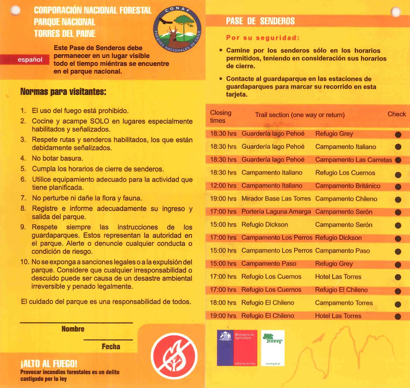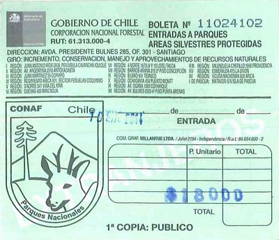 acceso al parque (18.000 CLP c/u). Rellenamos una hoja con la ruta que vamos a hacer y nos dan una charla para que respetemos el parque.