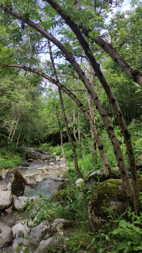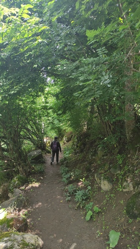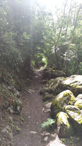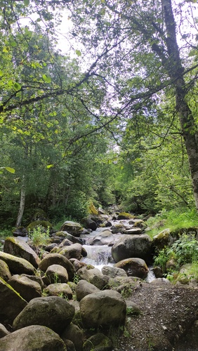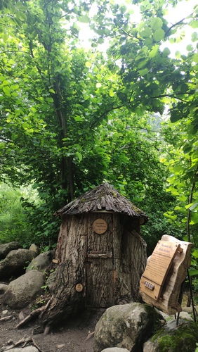 Desde el centro del pueblo siguiendo los carteles Camin dera bruisha, llevan a una ruta circular, corta y poco exigente, que serpentea durante dos kilómetros a través de un frondoso bosque junto al río Aiguamòg. Es un recorrido apto para todos los públicos, ideal para hacer con niños, por su temática de cuento y fantasía. El camino está salpicado de elementos interactivos, como columpios, puentes de madera, esculturas de árboles con rostros y sombreros de bruja, se puede incluso visitar la casa de la bruja, con caldero y todo, y en días de mucha afluencia de público está la propia bruja explicando su historia.