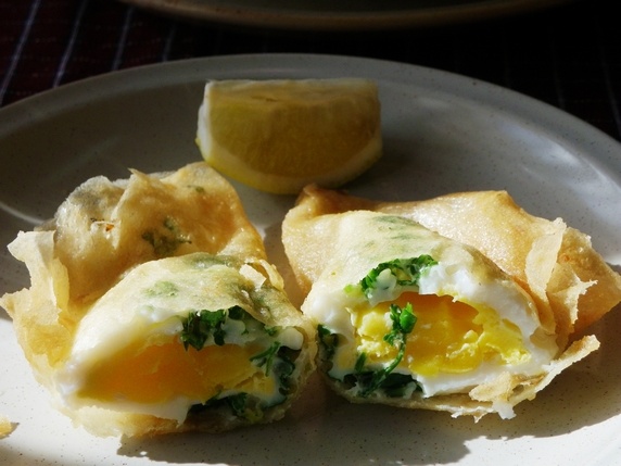 Otro clásico es el briq, una empanadilla grande de fino hojaldre rellena de un huevo con la clara cocida y la yema liquida. Puede llevar además queso, atún o algo de carne o marisco. Las ensaladas típicas son la tunisienne que lleva lechuga, tomate, pepino, cebolla, pimiento y aceitunas; y la mechouia hecha de berenjenas, tomates asados, calabacín, cebollas y aceite de oliva.
