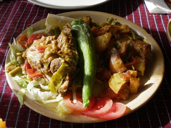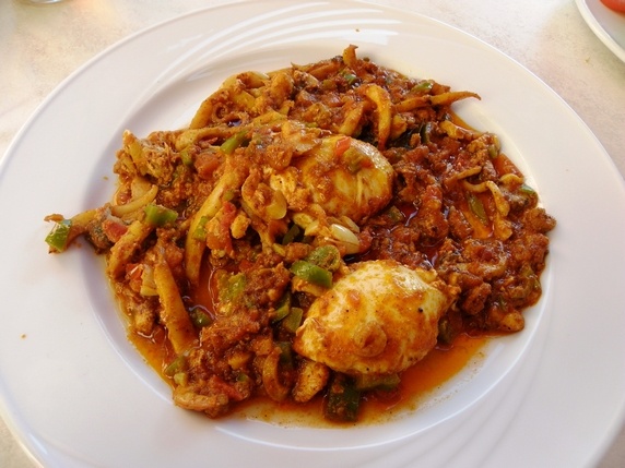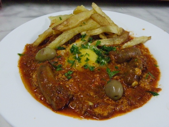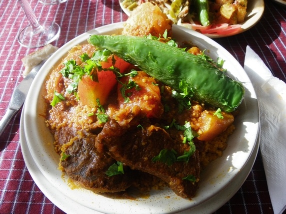 Chorba es la sopa picante hecha con caldo de pollo o cordero; y la tajine, no confundir con el plato magrebí, es una especie de tortilla rellena de patata, verdura, queso y carne. El ojja y la chakchouka, son dos platos que no aprendí a distinguir a base de huevos, tomates, cebollas, pimientos, especias y a menudo merguez, todo ello cocinado en aceite de oliva. Por supuesto uno de los platos mas populares es el tradicional cuscús, hecho a base de sémola de trigo, acompañado de carne o pescado.
