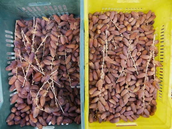 cuerno de gazella, una deliciosa pasta de hojaldre y nueces bañada en miel. También hemos visto higos chumbos y dátiles, cuya especialidad mas apreciada, los Deglet Nour, pueden probarse en Tozeur.