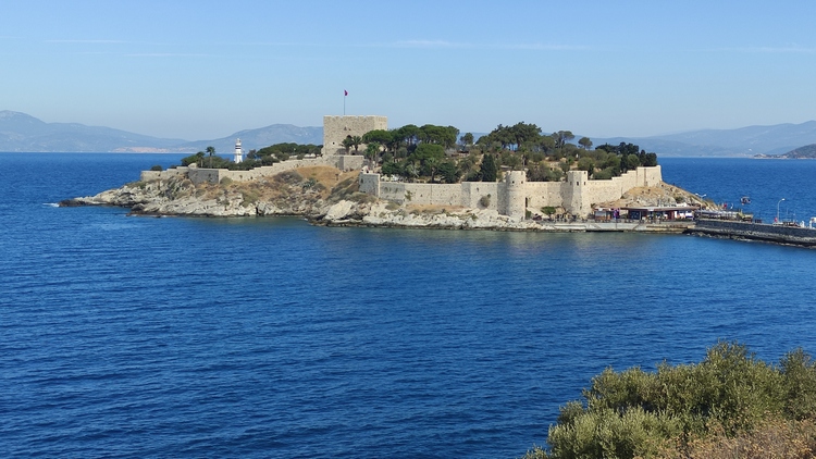 Kuşadası, en la costa mediterránea, una parada clásica de cruceristas, atraídos por sus playas y las fastuosas ruinas romanas de Ephesos. Desde aquí, a tres horas por carretera, se pueden visitar las piscinas travertinas de