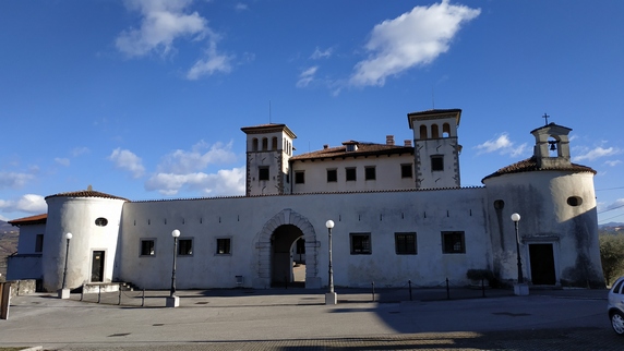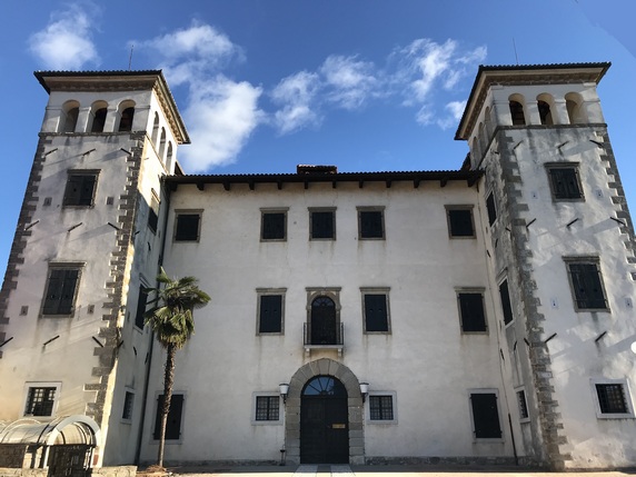 Dobrovo es su castillo. No es una fortaleza al uso, con almenas y puentes levadizos, es un palacio renacentista del siglo XVII de planta cuadrada, con torretas también cuadradas en cada una de sus esquinas, una de ellas es la capilla. Alberga una galería de arte, un museo y un restaurante. El castillo abre de 13h a 17h, todavía no son ni las 12h, y como en el resto del pueblo no hay nada más que ver, disfrutamos de las vistas del valle desde su patio de armas, y seguimos nuestro camino.