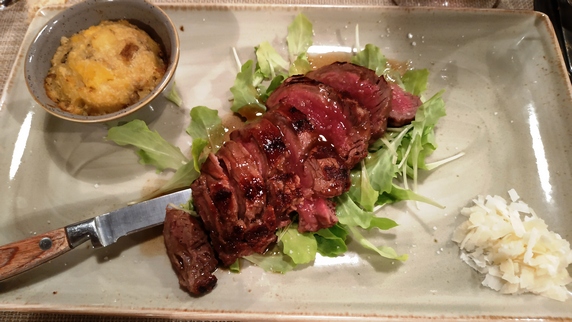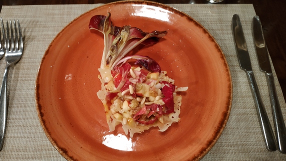 Hiša Marica, Šmartno, ocupa una casa de piedra donde también se alquilan habitaciones. El restaurante ofrece cocina tradicional eslovena-italiana, basada en ingredientes locales y de temporada, con una cuidada presentación. Tiene mucho exito, parece que somos los unicos que no hemos reservado mesa. Además de la carta hay dos menús degustación de 26€ y 28€, y una buena selección de vinos. Escogemos un menú de cada, tres copas de vino y dos chupitos de licores locales, 65€.