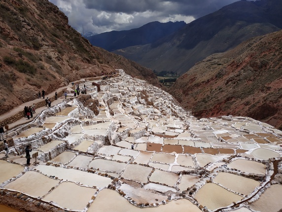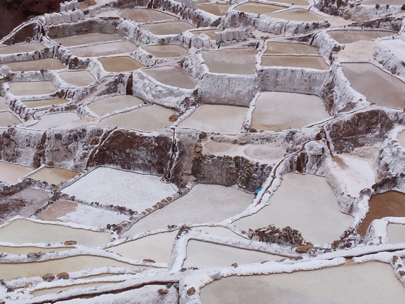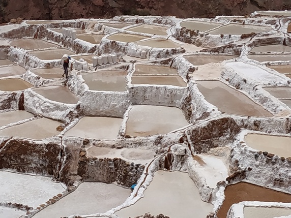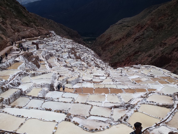 Salineras. Son alrededor de 3.000 pozas alimentadas por agua salina que se filtra del suelo por el Qoripujio, un ojo de agua, para obtener sal por medio de la evaporación. Su ubicación en una llanura a 3028 mts de altura, rodeadas de montañas nevadas que les proporcionan un ambiente seco templado y con bastantes precipitaciones, hace que hayan sido explotadas desde tiempos precolombinos. Los 20 soles de