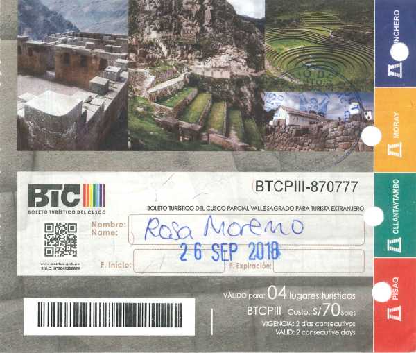 boleto turistico obligatorio que cuesta 70 soles / 130 soles en función del numero de sitios que desees visitar.