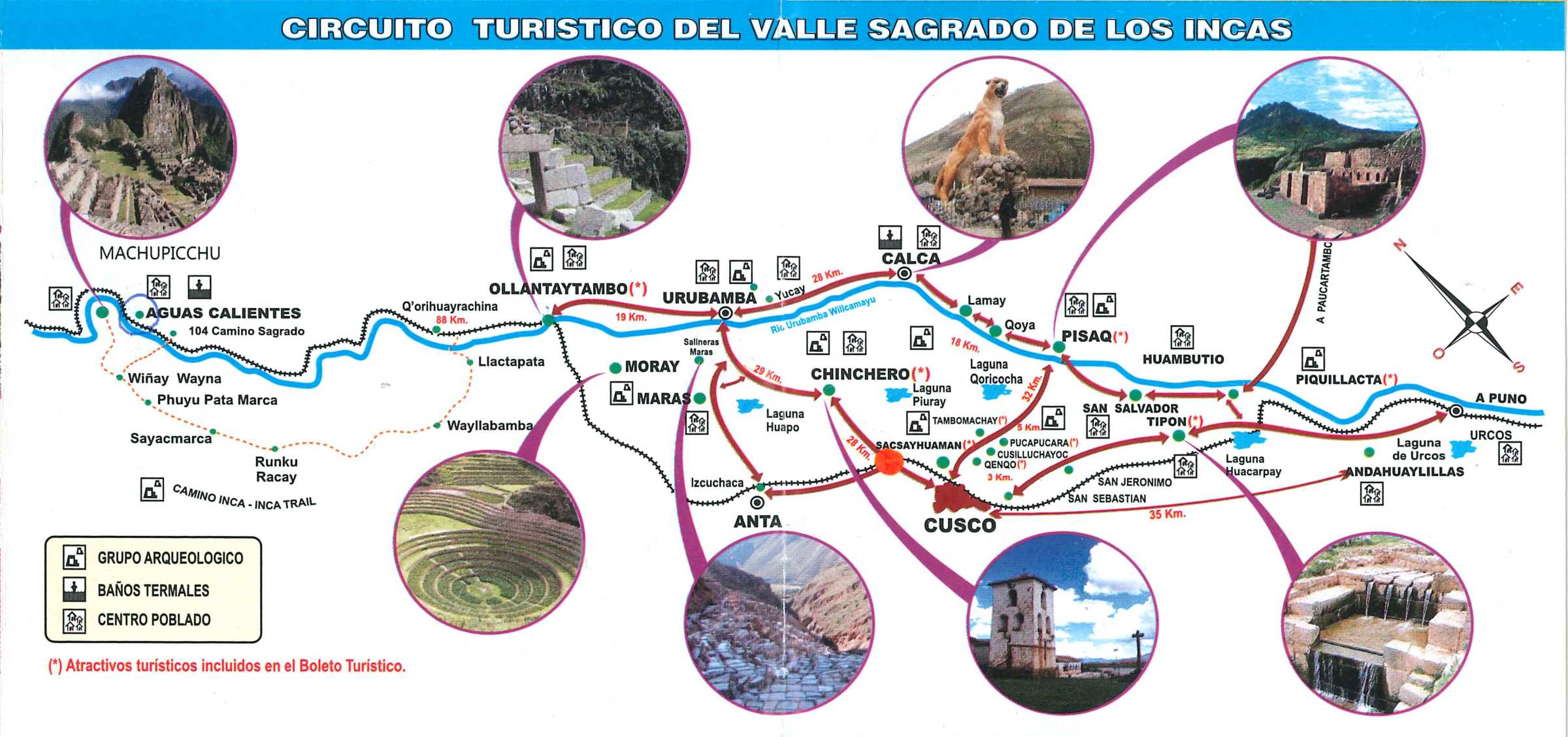Valle Sagrado, la excursión de un día más popular en Cuzco, que recorre algunas localidades con pasado inca. Esta zona está situada entre altas montañas, donde numeroso ríos crean quebradas y pequeños valles, crean un variado y colorido paisaje. Debido a su extraordinario clima fue una importante fuente de producción agrícola para los incas, el auténtico granero de la ciudad de Cuzco. De aquella época quedan todavía hoy numerosos restos arqueológicos, que pueden verse en viajes organizados desde Cuzco. En los alrededores de la Plaza de Armas hay multitud de agencias que ofrecen tours entre 70 y 120 soles, organizados en uno o dos días, en función de los sitios a visitar, y suelen incluir la comida además del transporte. Nosotros escogemos un tour que aglutina en un solo día lo que otros ofrecen en dos. Al precio del tour hay que añadirle un
