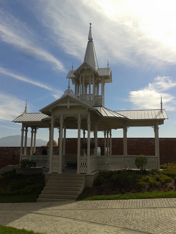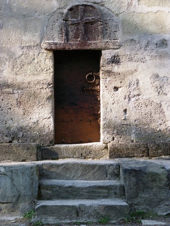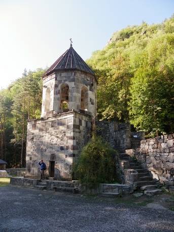A diez minutos de Borjomi un camino de piedra nos adentra 1.300 mts en el bosque hasta el Green Mo- nastery. Rodeados de altos árboles unos po- cos edificios de piedra rodeados de un peque- ño muro albergan una pequeña comunidad monastica. |