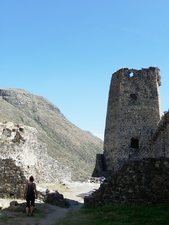 Khertvisi fortress. Dice la leyenda que las primeras edificaciones tuvieron el honor de ser destruidas por Alejandro Magno, aunque los muros actuales datan de 1.354. Durante los siglos X y XI fue el centro de la región de Meskheti, destruido por los mongoles en el XIII, recuperó su apogeo en el siglo XV con la familia Jakhely, para finalmente caer en manos del Imperio Otomano en el siglo XVI. Se encuentra en bastante mal estado, y hay que hacer notables esfuerzos para imaginárselo en toda su grandeza, pero es una buena excusa para estirar las piernas.