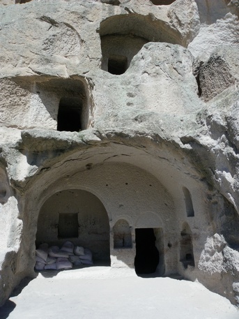 Es sin duda un lugar espectacular, una visita obligada en cualquier viaje a Georgia. Habiendo visitado Davit Gareja puede parecer mas de lo mismo, pero aquí se trata de una autentica ciudad de cuevas, 600 años mas nuevas y mejor conservadas. Para hacerle justicia hace falta un día entero, sin paradas. Al llegar la furgoneta nos ha dejado en el parquing, entre el restaurante y las taquillas. Desde allí hay 15 minutos colina arriba por camino asfaltado hasta las cuevas. En el restaurante sirven comida georgiana, refrescos y cafés, que pueden degustarse en unas mesas con fantásticas vistas junto al río.