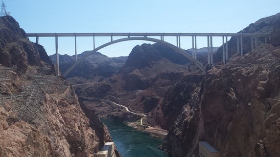 Presa Hoover. Situada en el curso del río Colorado, con unas dimensiones de 220 mts de alto por 380 de largo, es una de las presas más grandes del mundo. Hasta los ataques terroristas del 11S se permitía cruzar el río por la ruta 93 sobre ella, por motivos de seguridad en 2010 se inauguró el