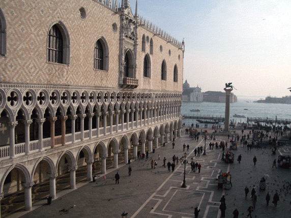 Torre dell'Orologio, que tiene un reloj que indica la hora, la fase lunar y el zodiaco, el Campanile, el Palacio Ducal, y el Puente de los Suspiros, que comunicaba el Palacio con los calabozos. Comida por la zona (21€) y postres en la Heladería Nico (1,70€ dos bolas). Desde el muelle de Zattere nos acercamos a la Academia y la