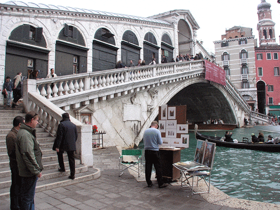 Empezamos en la Santa Croce, próxima al hotel, y callejeamos un poco hasta los Mercados de fruta y pescado de Rialto. Cruzamos su famoso puente abarrotado de tiendas hasta llegar a la Plaza de San Marcos, donde se encuentran la
