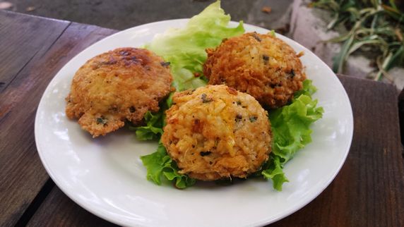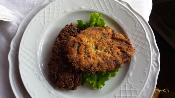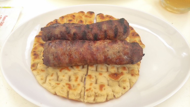 Ligavec (croqueta enrollada) y llukamik me rigon (salchicha) |