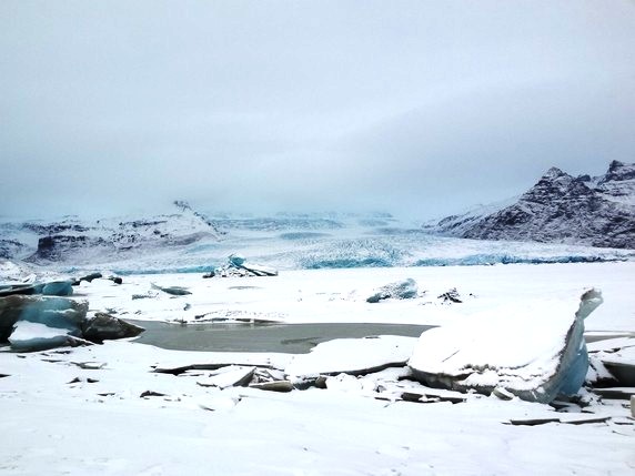 viaje en invierno. Debido a la corriente cálida del Golfo que llega hasta aquí, las temperaturas medias en el sur son de 0º y de -10º en el norte, valores muy por encima de la Laponia o del este de Canadá, que se encuentran en latitudes similares. De todas formas el invierno es duro, sobre todo por la falta de luz y los fuertes vientos, que hacen bajar la sensación térmica de forma brusca. En el norte el paisaje es completamente blanco, nieva a diario, por la noche se alcanzan temperaturas por debajo de -15º, y el viento es casi una constante. En el sur a la nieve le cuesta más cuajar, en el paisaje pueden verse manchas verdes de hierba y negras de las rocas volcánicas; en esta zona el mayor peligro son las capas de hielo que se forman en los núcleos urbanos y las zonas poco transitadas, que hacen muy recomendable el uso de crampones.