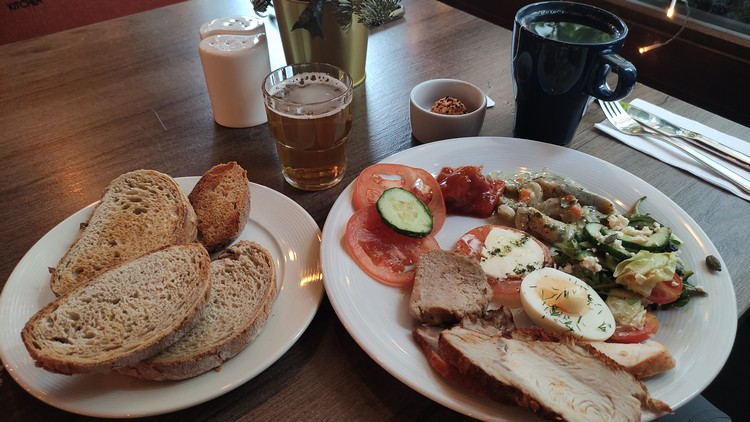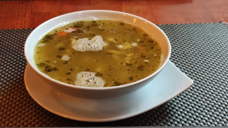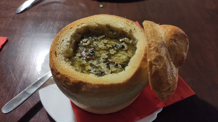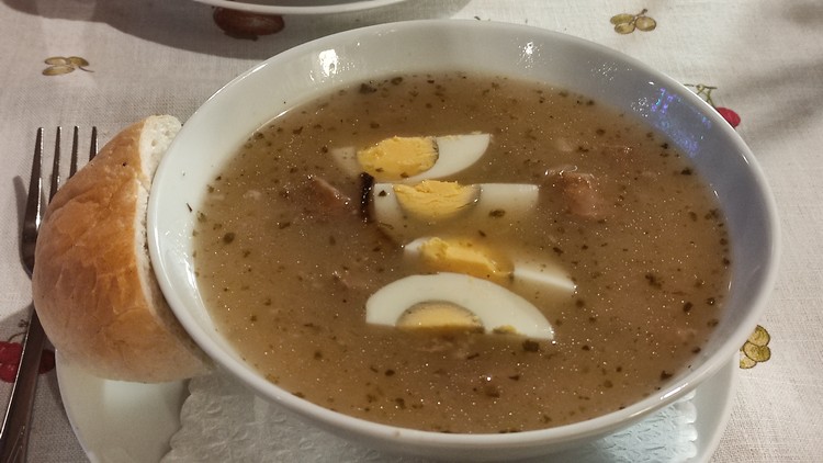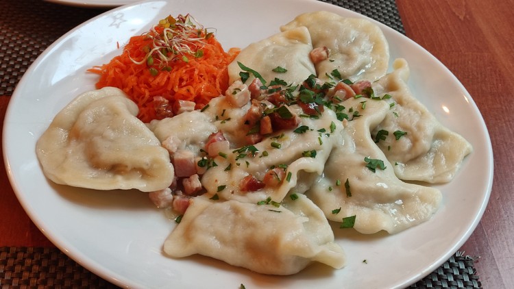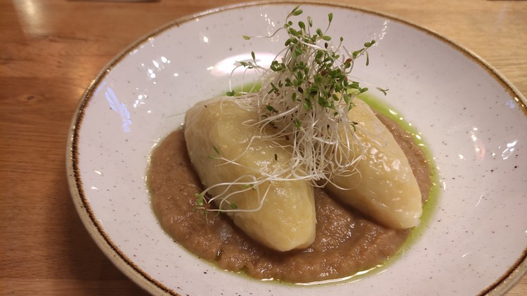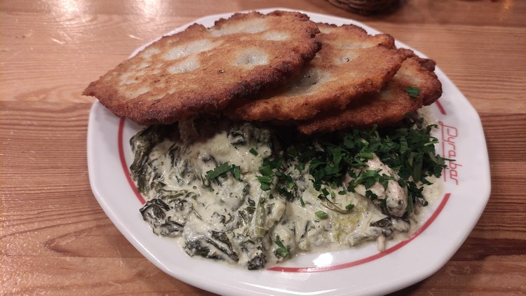 | Kurak Na Lazurowyn, pollo con espinacas y queso azul |
