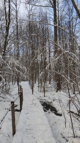parques naturales de Biebrza y Bialowieza. Frondosos bosques y marismas son surcados por kilómetros de senderos y pasarelas de madera. Todo esta cubierto de nieve y no todos los caminos son accesibles, pero con ayuda de los crampones hacemos varias caminatas, buscando a ver si escondidos entre el denso ramaje los osos, ciervos, alces, linces, castores, lobos o bisontes que habitan en la zona. No pudimos verlos en libertad pero ahí varias reservas donde poder verlos en un entorno mas protegido.