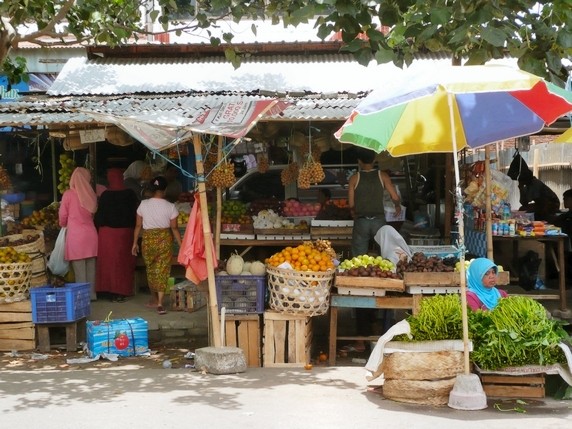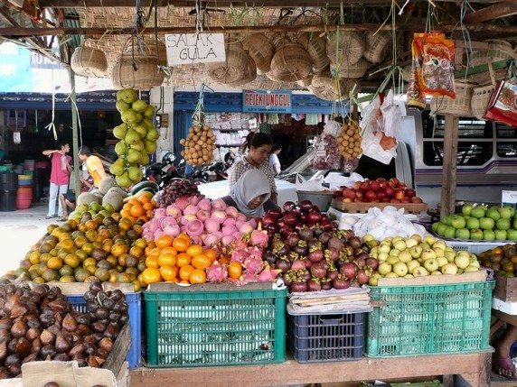 Paseamos un poco por el mercado que hay frente a la estación y recargamos la tarjeta del móvil. En la propia estación hay un restaurante donde comemos de coña por 35.000 IDR.