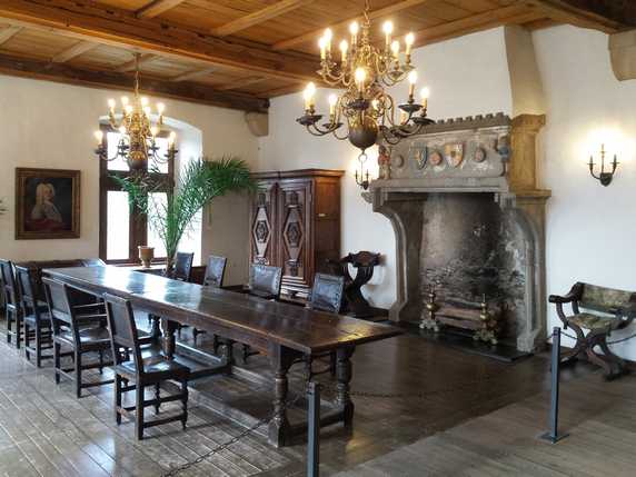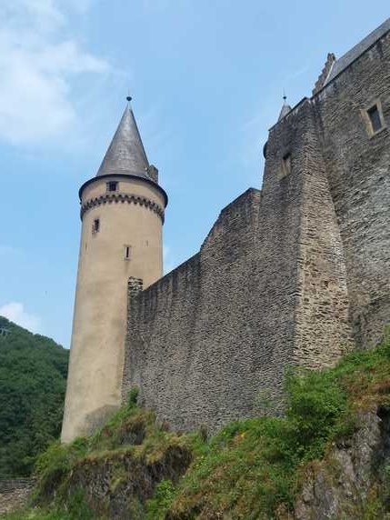 castillo (acceso 7€) no comenzó hasta el siglo XI, que pronto se convirtió en la residencia de los Condes de Vianden. En 1820, el rey Guillermo I, habiendo perdido su interés en Vianden y su castillo, vendió la fortaleza a un comerciante local, que vendió su interior como chatarra: los azulejos del techo, los paneles de madera, las puertas y las ventanas pieza por pieza, dejándolo en un estado ruinoso. Tal fue el expolio, que el monarca lo volvió a comprar siete años más tarde con la intención de restaurarlo, pero la convulsa historia europea de los siguientes 150 años, retrasaron hasta 1962 el inicio de una restauración completa que duraría 30 años, y que nos permite admirarlo tal como lo vemos hoy.