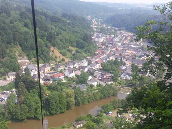 Siguiendo uno de los márgenes del río se llega hasta un telesilla (4,80€ ida y vuelta), que en un corto trayecto de diez minutos sobre el río y el bosque, se eleva 450 mts hasta un mirador con restaurante, ofreciendo unas vistas fantásticas del valle, el pueblo y el castillo.