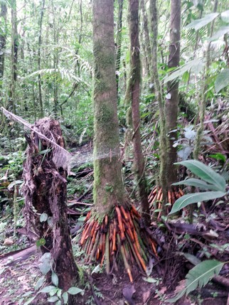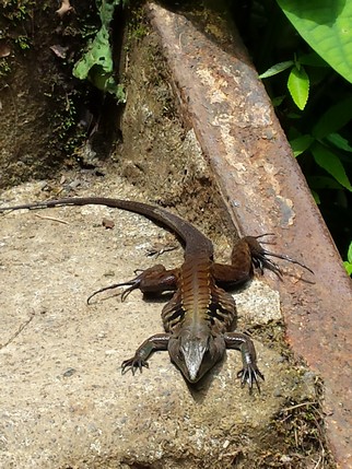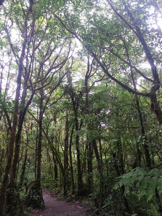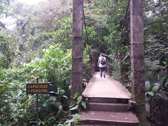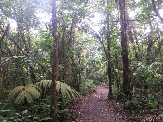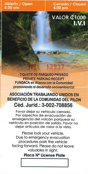 parquing 1.000 colones. Dentro de su territorio se encuentra el macizo del volcán Tenorio, compuesto de varios conos y cráteres; así como el río Celeste, su principal reclamo turístico. Actualmente solo hay un camino abierto al público, Senderos del Tenorio, una pista en ascenso de 3 km, cómoda y bien señalizada, de unas tres horas de duración (ida y vuelta). Atravesamos un bosque virgen denso con una gran variedad de árboles y helechos, abundan las heliconias y las bromelias, y no es raro ver orquídeas. La fauna es variada, aquí hay pumas, jaguares, dantas, pequeños felinos, monos, la mitad de los pájaros del país, así como gran variedad de reptiles y serpientes. Pero hay demasiado tráfico humano y los animales por general son asustadizos, a pesar de todo vimos lagartos, sapos, cangrejos, y un nido de tarántulas.