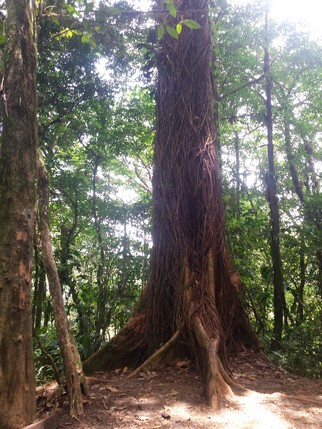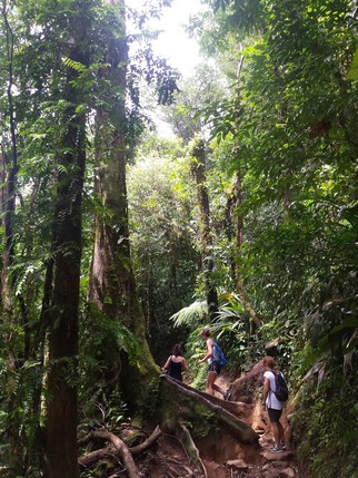 Tras un rato caminando entre un bosque de altísimos árboles aparece el primer desvío, un largo descenso de 234 escalones que lleva hasta la