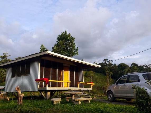 wifi, terraza y baño privado completo con agua caliente. Las camas están orientadas hacia una pared abierta solo protegida por mosquiteras con vistas espectaculares del volcán Miravalles. El precio incluye pensión completa, comida fresca y saludable cultivada por ellos. La finca está gestionada por Joselyn, Jonathan y su hija Jade, todos ellos encantadores, y además alberga dos voluntarias que colaboran en los trabajos de mantenimiento de la granja, Kathleen de Kentucky, y Geneva de Montreal.