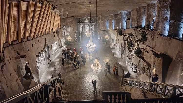 tren desde Krakow Glowny, a 300 mts de nuestro hotel, en tan solo veinte minutos. Se trata de una de las minas de sal activas más antigua del mundo, pues han sido explotadas sin interrupción desde el siglo XIII. Alcanzan una profundidad de más de 300 mts y superan los 300 km de galerías.