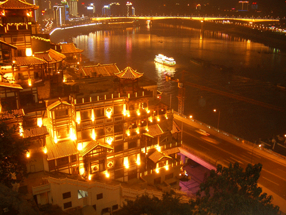 CHONGQING. (15.300.000 hab.) Establecida hace más de 3.000 años, Chongqing, esta situada en el cruce del los ríos Yangtze y Jialing, siendo la mayor ciudad industrial y comercial del suroeste de China. Sus principales puntos de interés son: ser el punto de partida de los "Cruceros por el Yangtze" que atraviesan las Tres Gargantas; y las cuevas de Dazú a 165 km de la ciudad, donde se encuentra uno de los mayores tesoros de esculturas budistas del país. Recomendable coger el teleférico (2