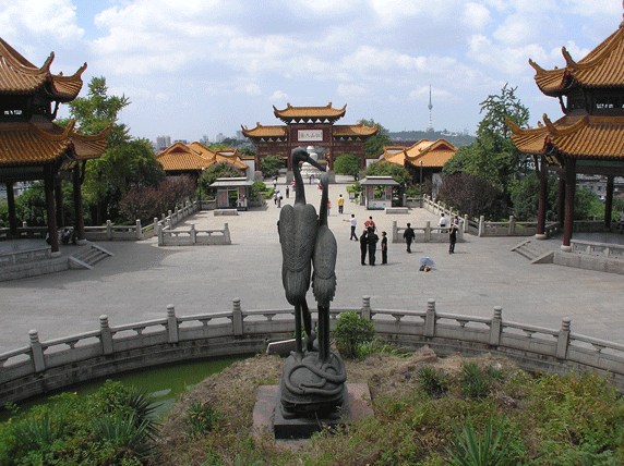 ), construida en el año 223 durante el periodo de los Tres Reinos, y que fue utilizada al principio como torre de vigilancia. Durante la dinastía Tang se convirtió en lugar de alabanza de poetas y escritores. Posteriormente fue destruida hasta siete veces, y su ultima reconstrucción data de 1981. Vista desde cualquier ángulo su aspecto es exactamente igual, mide 51 metros de altura y tiene cinco plantas con diferentes exposiciones en cada una de ellas. Dentro del mismo recinto se pueden visitar además más de 60 puntos de interés, como pagodas, templos, jardines, lagos...