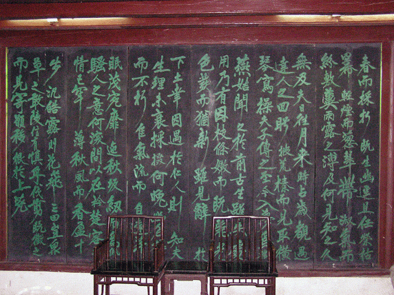 El templo, que acoge numerosas inscripciones y cuadros de personajes ilustres de la historia china como Yan Zhenqing y Su Shi, ha sido desplazado junto a 126 árboles centenarios a 32 km de su ubicación original, para evitar que desaparezca bajo las aguas.
