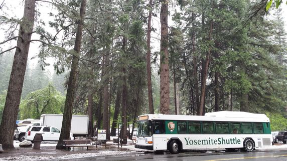 La zona de servicios de Yosemite Valley ocupa unos 6 km