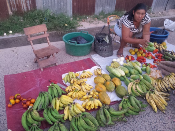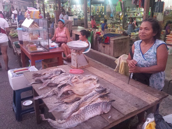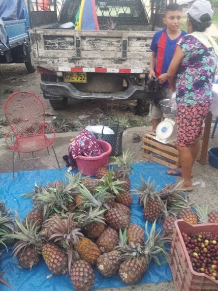 Mercado de El Vado, que abre todos los días a las 15h, y es donde venden sus productos los campesinos de uno y otro lado del rio Huallaga. Compramos fruta y probamos el