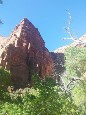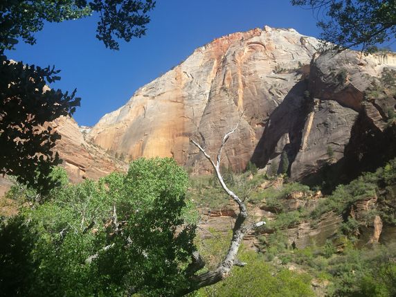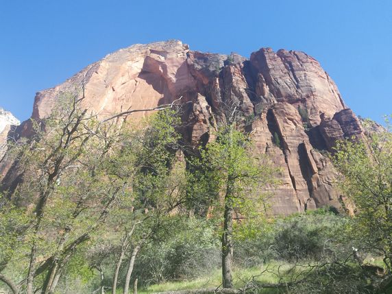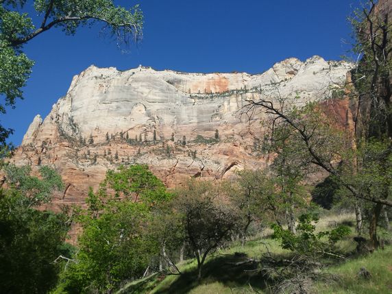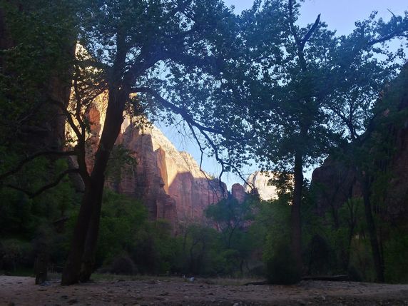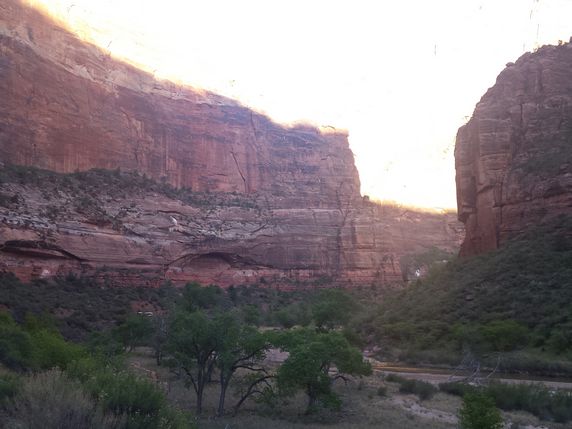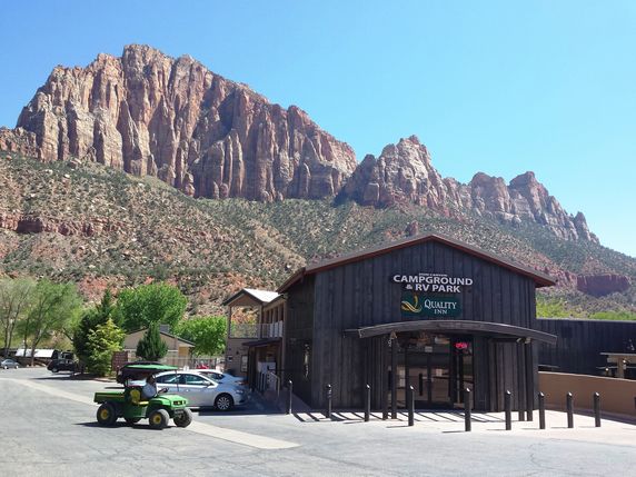 Zion Canyon Campground, 39$. Frente a la parada del autobús de enlace al parque. A pesar de estar junto a la carretera principal, es tranquilo y silencioso, junto a un pequeño arroyo y con estupendas vistas del cañón. Hay café en el